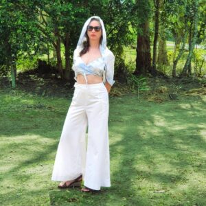 Wide leg, high-waist pants in ...
