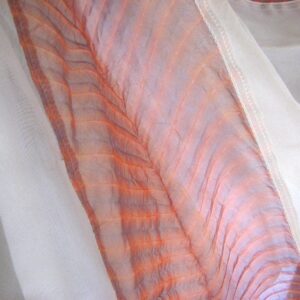 To create the striped panels I pleated them finely using a shibori technique. Then I dyed them red, turned them and pleated them again then dyed them blue.