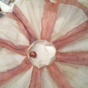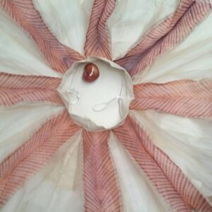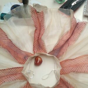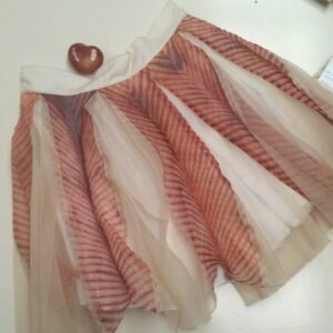 Outer skirt is silk organza, with hand-dyed shibori panels, and inner skirt is soft and light cotton voile – lovely against your skin.