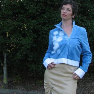 womens jacket in hemp fabric, hand-dyed in natural indigo.