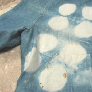 I dyed the jacket in natural indigo, leaving the pattern of circles on the front, before sewing the cuffs and waist band on. The bamboo lining is a natural off-white colour, and feels so lovely and soft that I lined the pockets with it as well.