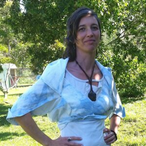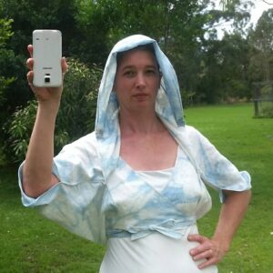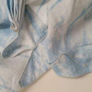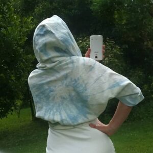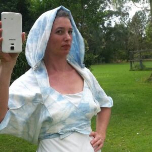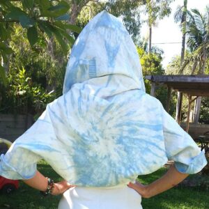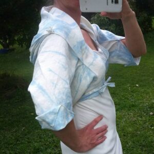 Wrap cropped summer jacket (what a mouthful!) cleverly tailored from a square of beautiful hemp fabric which I dyed in natural indigo. (Actually now it's a rectangle of fabric because I added a hood to the design). The beauty of it is that the whole rectangle is used – no offcuts! Probably no one else cares about that but me because I'm such a nerd – so thanks for letting me gloat 🙂