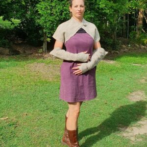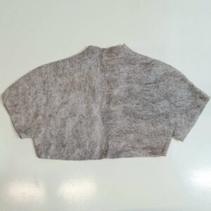 This is a size L garment. Felt will stretch slightly and mold to the body, so this shrug is recommended for US size 10 to 12, and Aust size 14 to 16.