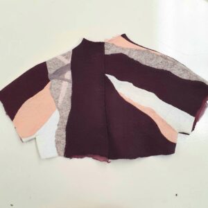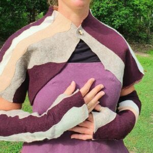 This is a size L garment. Felt will stretch slightly and mold to the body, so this shrug is recommended for US size 10 to 12, and Aust size 14 to 16.