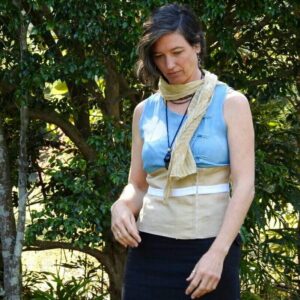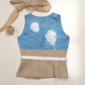 Cute women's sleeveless top made from hemp and natural indigo dyed bamboo.